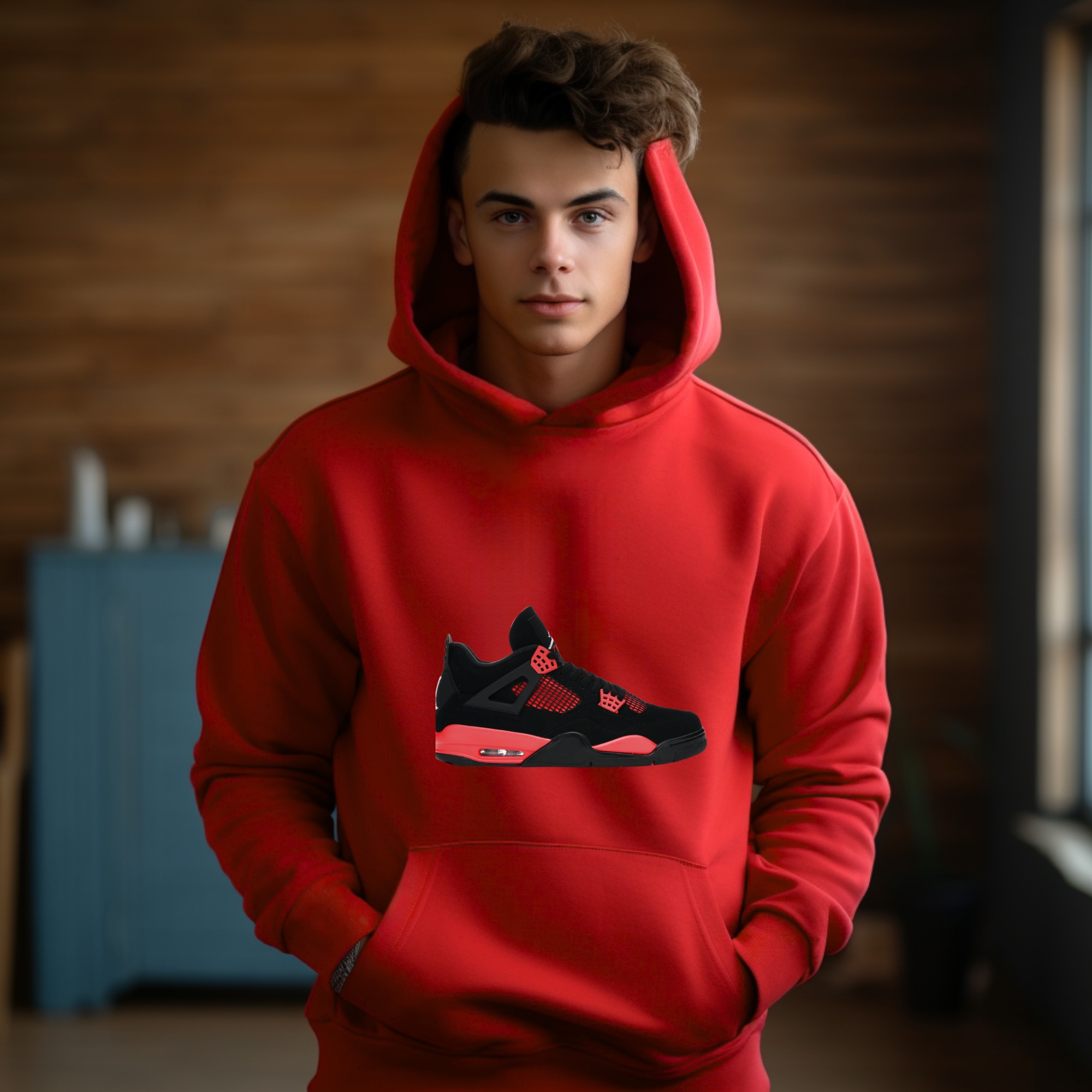 Black Red Sneaker Hoodie, Iconic Basketball Shoe Design, Urban Streetwear Apparel, Kicks Lover Gift, Retro Footwear Art