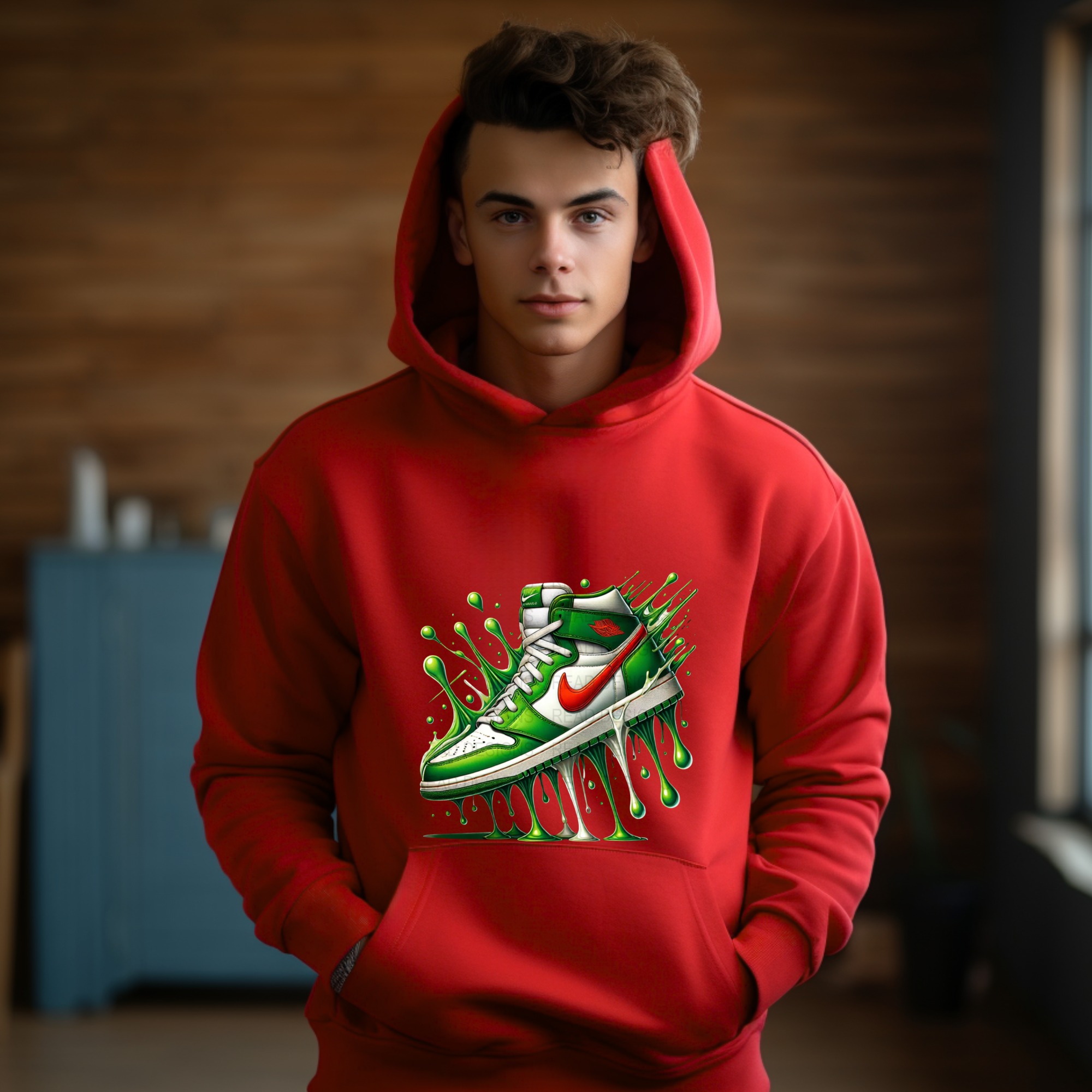 Dynamic Green Slime Sneaker Hoodie, Vibrant Drip Art Hoody, High Top Shoe Graphic, Trendy Streetwear Design, Urban Footwear Gift