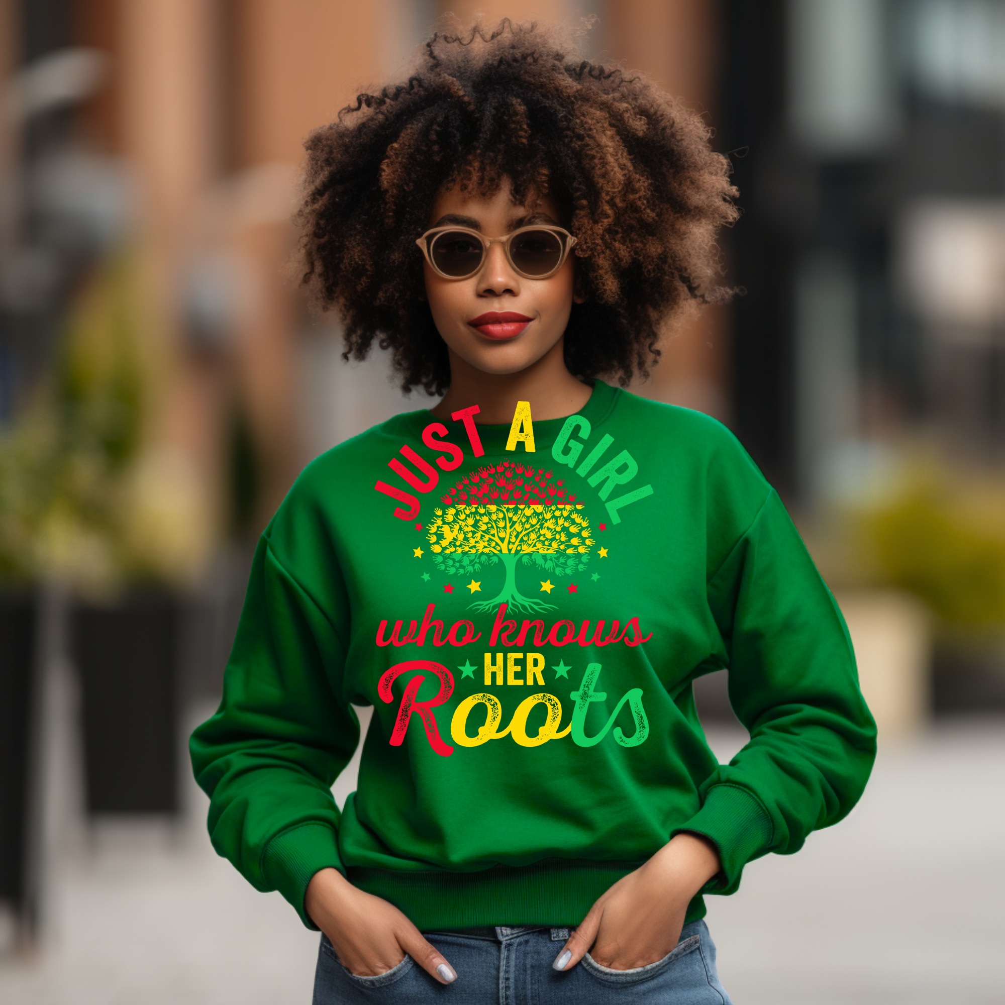 Just A Girl Who Knows Her Roots Sweatshirt, Tree With Hands Sweatshirt, African Heritage Sweatshirt, Pan African Colors Sweatshirt