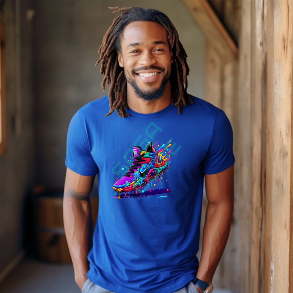 Colorful Sneaker Art Dripping Design on Graphic T-Shirt