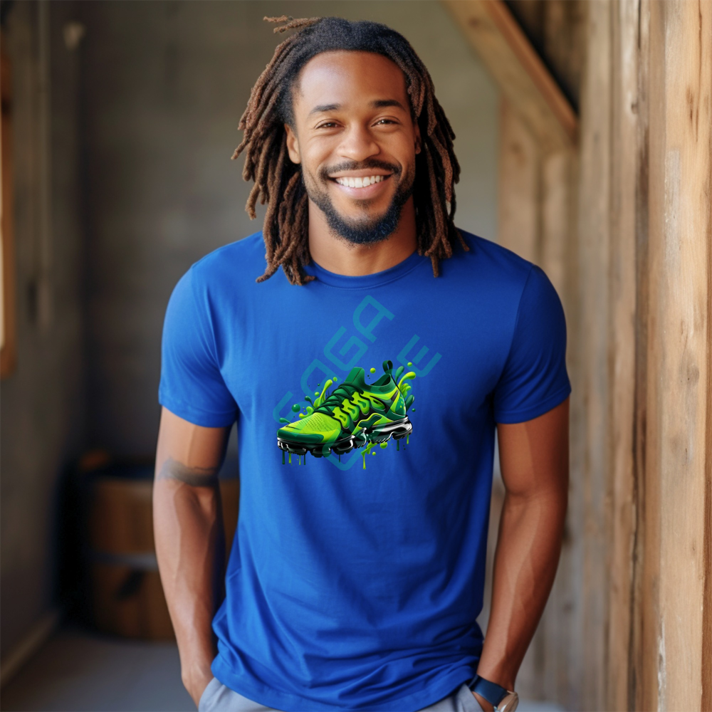$ 22.03 – $ 26.55Price range: $ 22.03 through $ 26.55Stand out with this vibrant green artistic shoe graphic printed T-Shirt. The dynamic design and striking colors make a bold fashion statement. Product Features for Gildan 64000: Fabrication: 100% ring-spun cotton – Light fabric (4.5 oz/yd² (153 g/m²)) Seams: Without side seams Fit: Eurofit Sizing: Runs true to size Label: Tear-away label