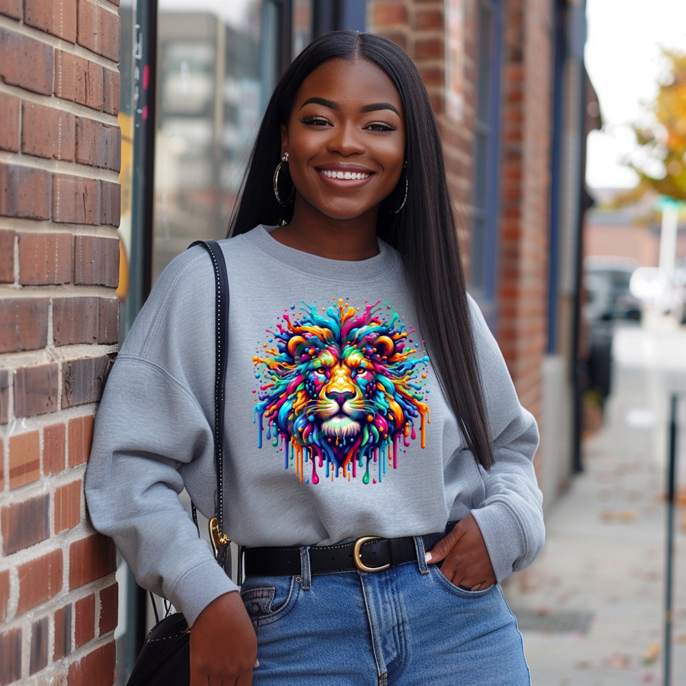 Majestic Colorful Lion Head Splatter Paint Art Sweatshirt