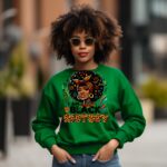 Celebrate Black history and empowerment with this unique sweatshirt. Featuring a beautiful African American woman with a stylish leopard print bandana and Afro, this design embodies cultural pride and strength. Perfect for expressing your heritage or as a thoughtful gift for someone special.