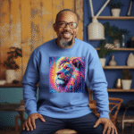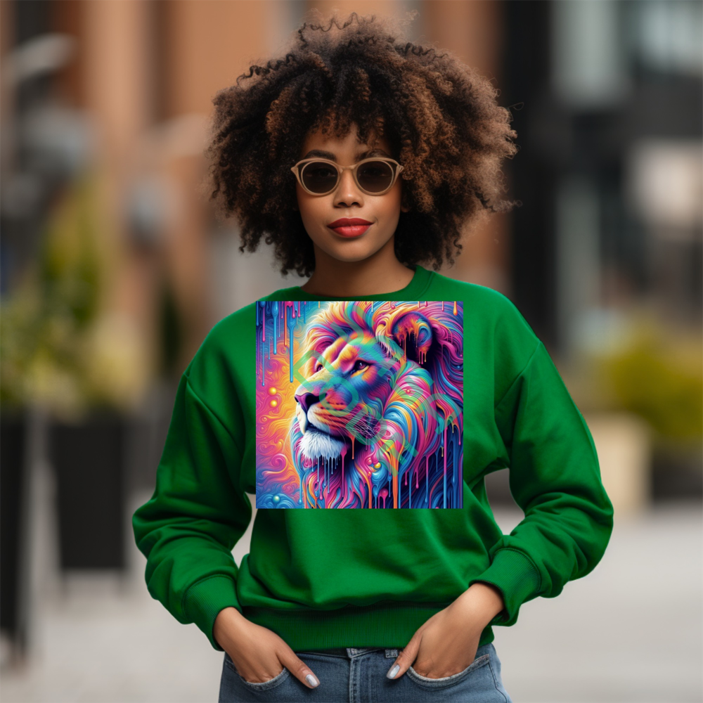 Embrace the wild and colorful with this eye catching sweatshirt featuring a vibrant lion design. The abstract art style and dripping paint effect create a modern and artistic look that is sure to turn heads. Perfect for animal lovers and art enthusiasts alike, this sweatshirt is a unique addition to any wardrobe.