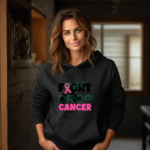 Support cancer research with this empowering Fight Cancer Hoodie. Featuring a bold design with awareness ribbon boxing gloves and fist this is perfect for showing solidarity.
