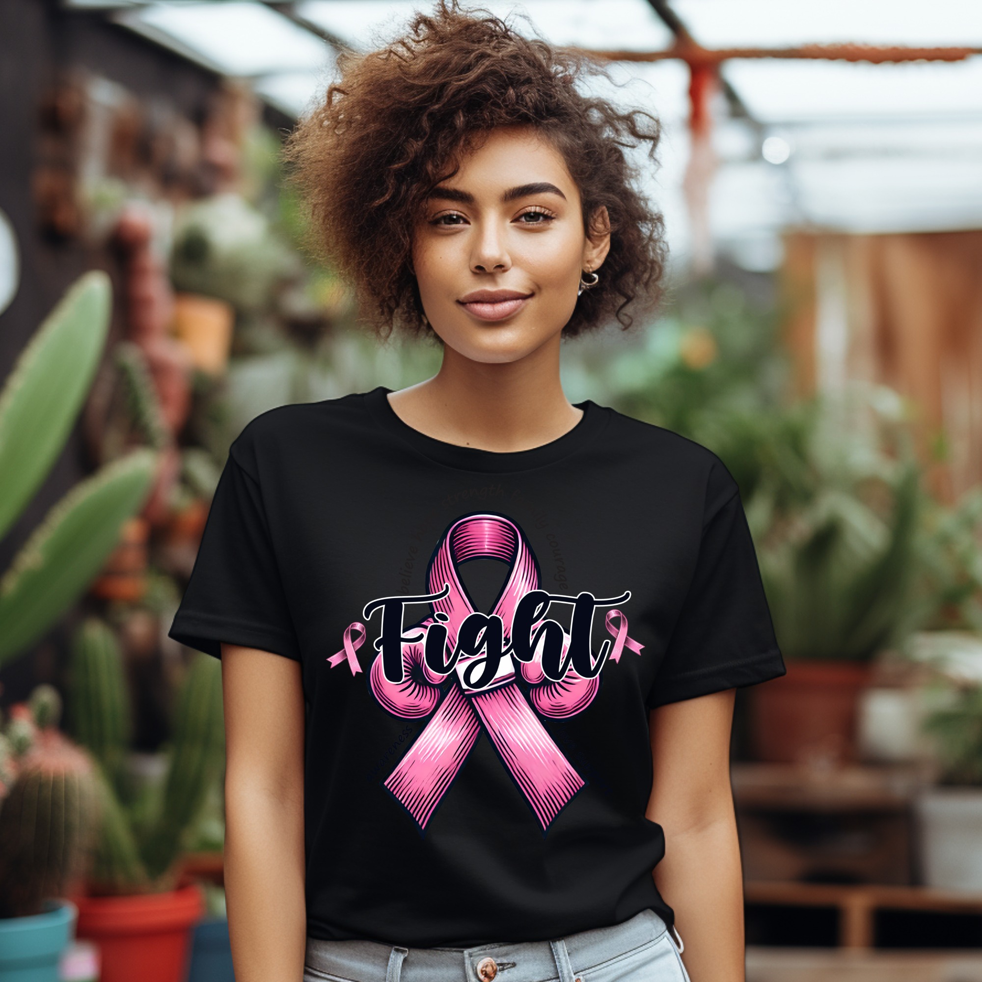 Express your support with this PNG design featuring a pink ribbon. Ideal for creating unique apparel designs and supportive gifts. Show your compassion with this fight support PNG.