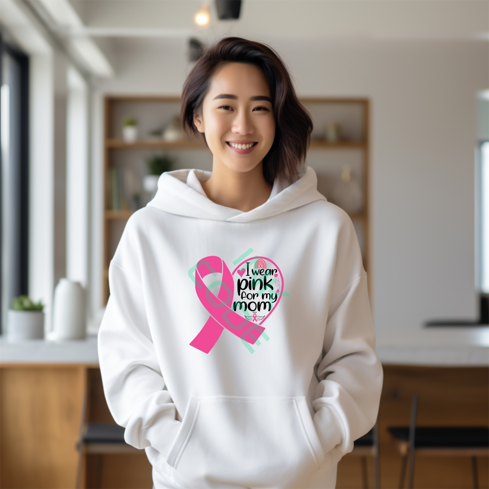 Show your love and support for breast cancer awareness with this “I wear pink for my mom” Hoodie! It’s a meaningful gift for yourself or a loved one to show support.