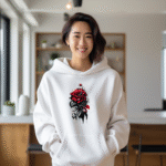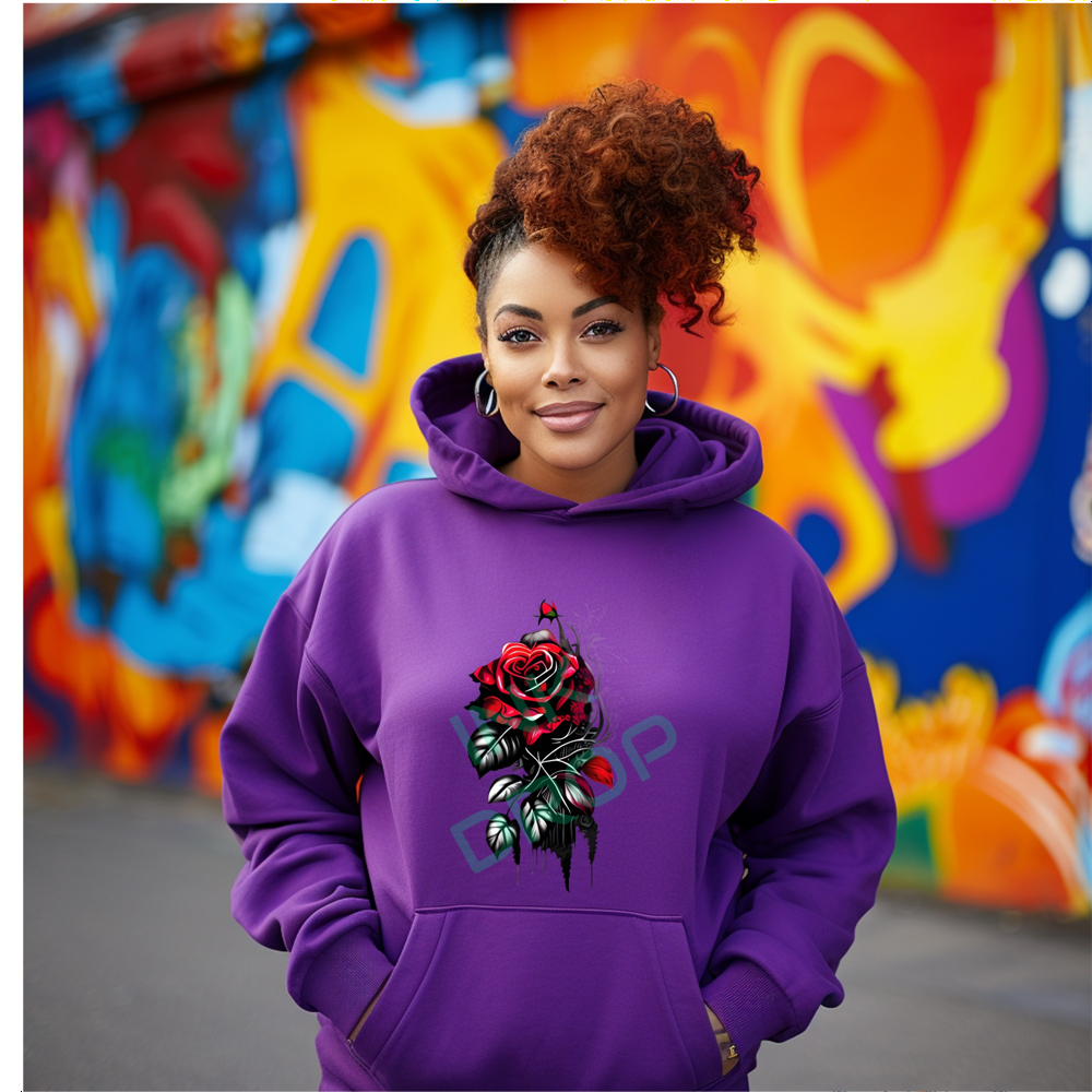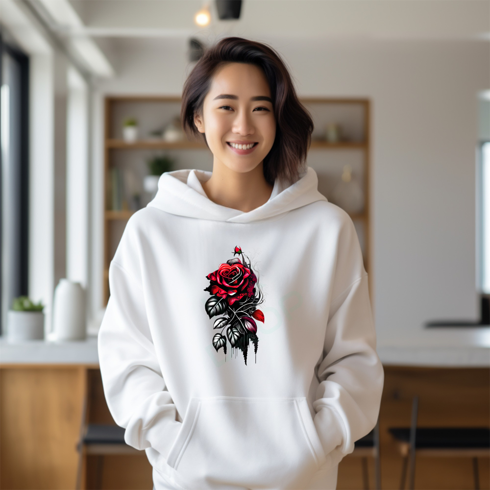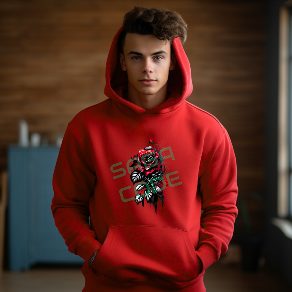 Express yourself with this unique floral art featuring a dark background and red design. Shop now to add this edgy and stylish item to your wardrobe and elevate your personal style.