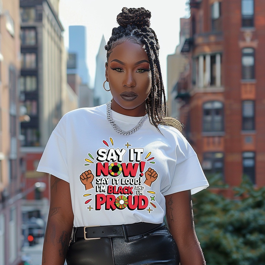 Celebrate identity with this design featuring “Say It Now” and “I’m Black and Proud”. Show your pride with style and confidence. Perfect for making a statement.