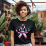 Pink Ribbon Breast Cancer Fight Graphic Design T-Shirt