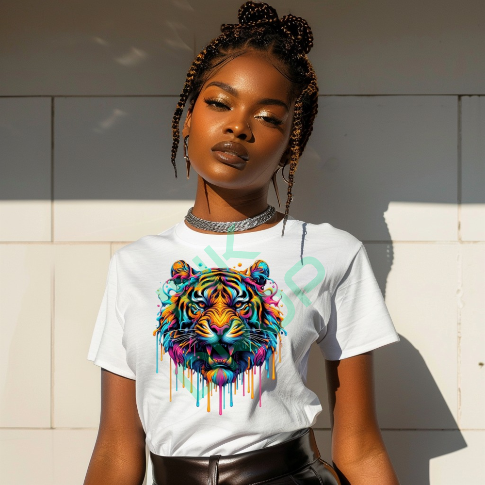 Colorful Tiger with Dripping Paint Graphic Art T-Shirt