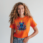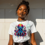 Neon Octopus Underwater Sea Creature Graphic Print T-Shirt