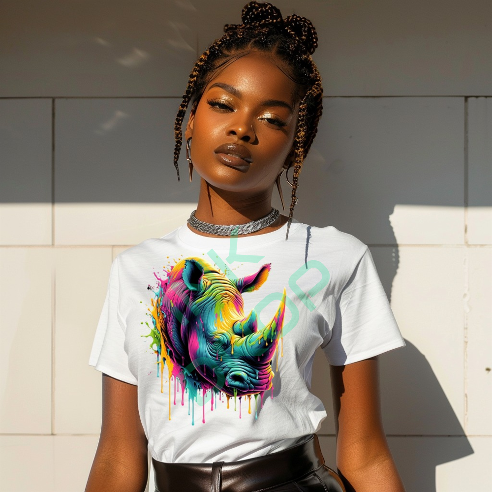 Colorful Rhino Splash Art Design Graphic Image T-Shirt