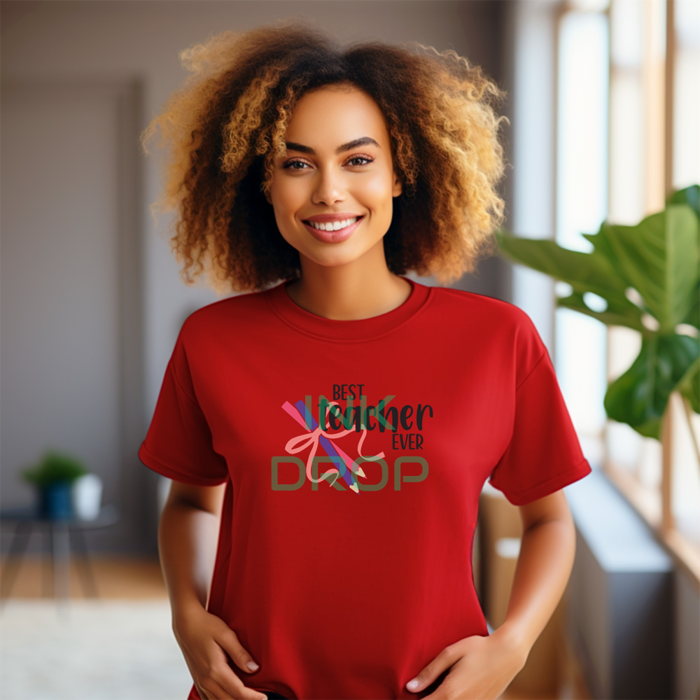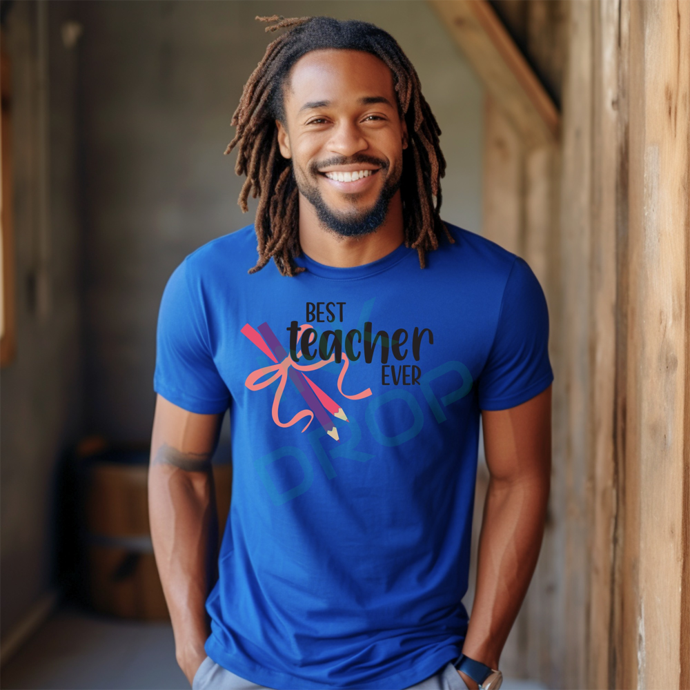 Best Teacher Ever With Ribbon And Pencils Graphic T-Shirt
