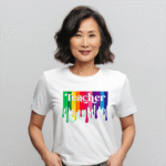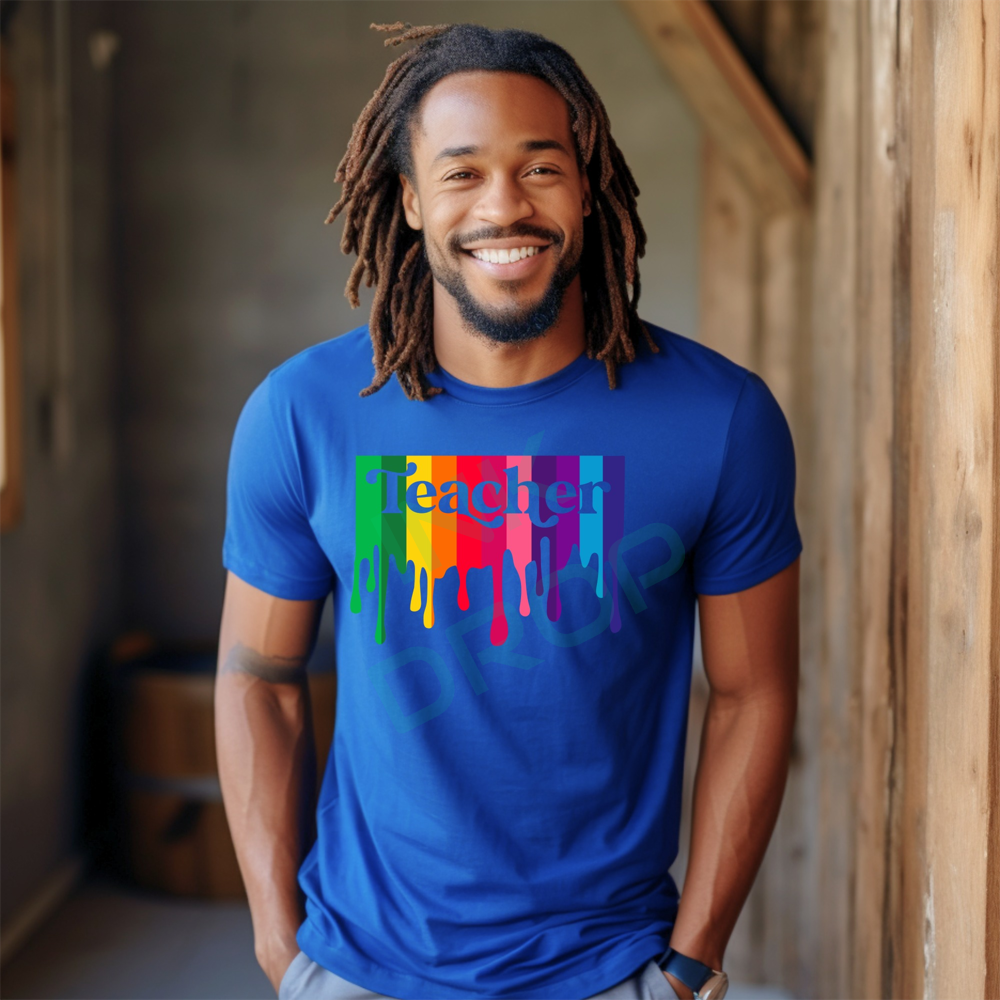 Colorful Teacher Design with Rainbow Drips Graphic T-Shirt