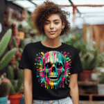 Neon Skull Art Splatter Design Graphic T-Shirt