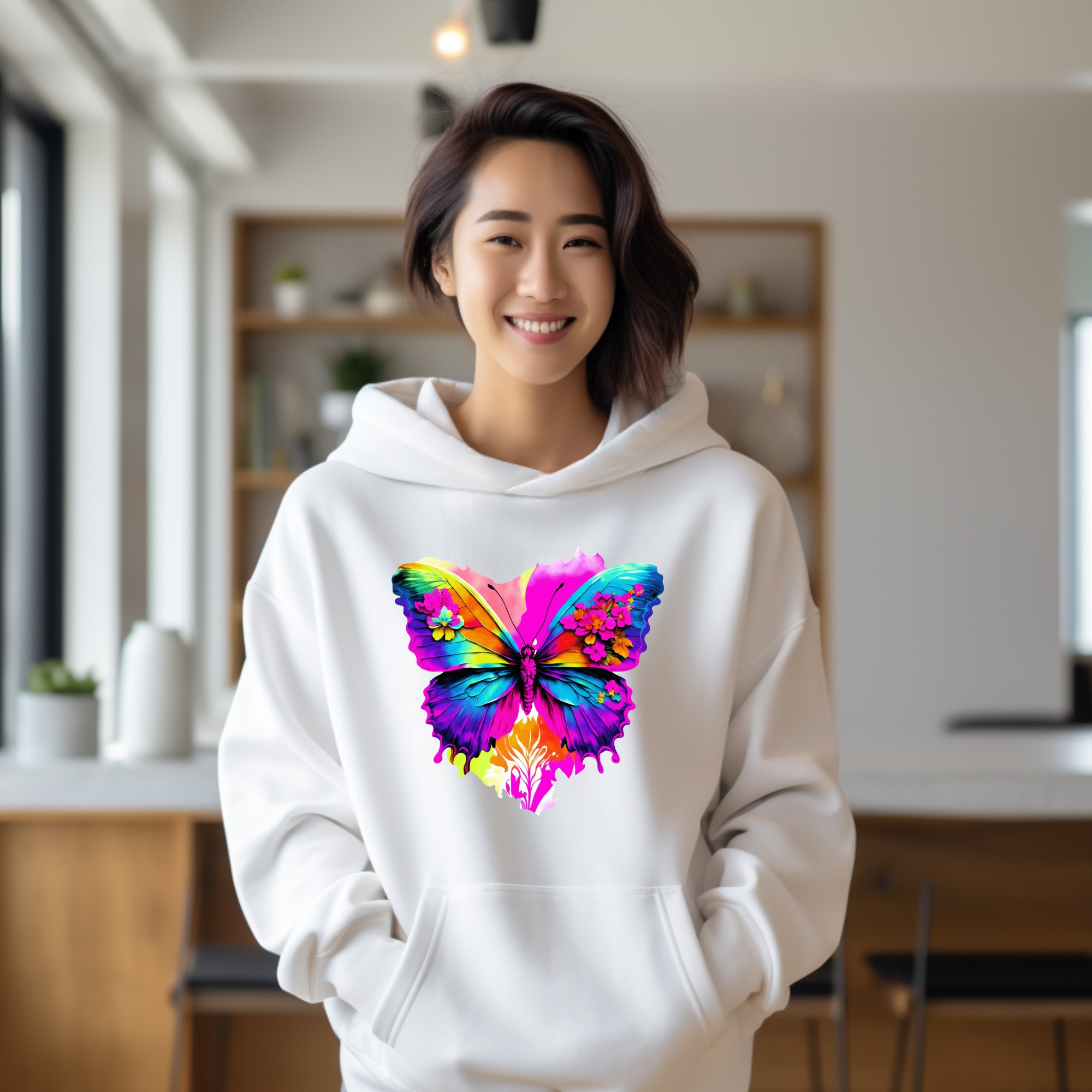 Vibrant Butterfly Floral Wings Graphic Design Hoodie