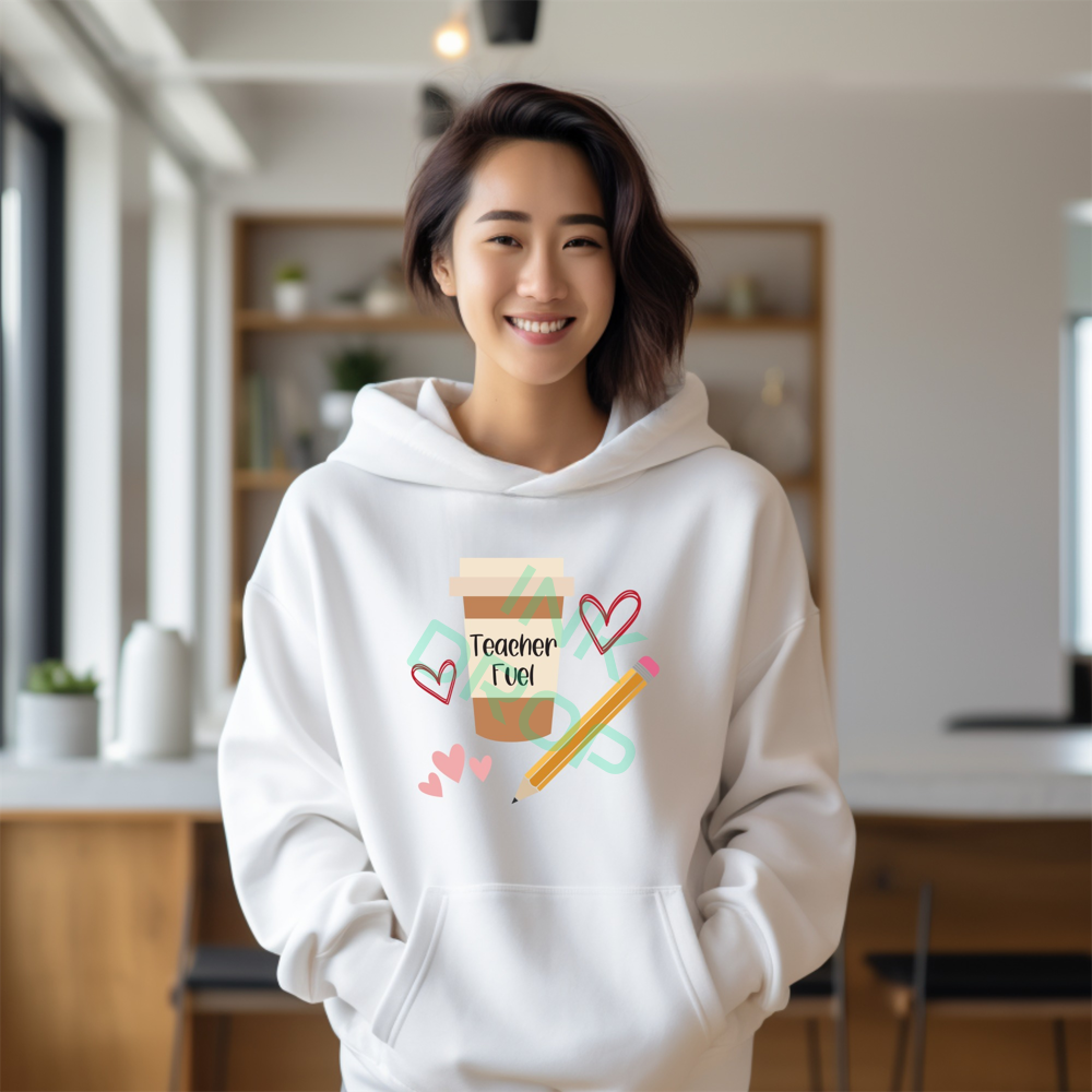 Teacher Fuel Hoodie, Coffee, Hearts, Pencil, Educator Apparel, Gift for Teachers, Teacher Appreciation, Back to School Hoodie, Trendy