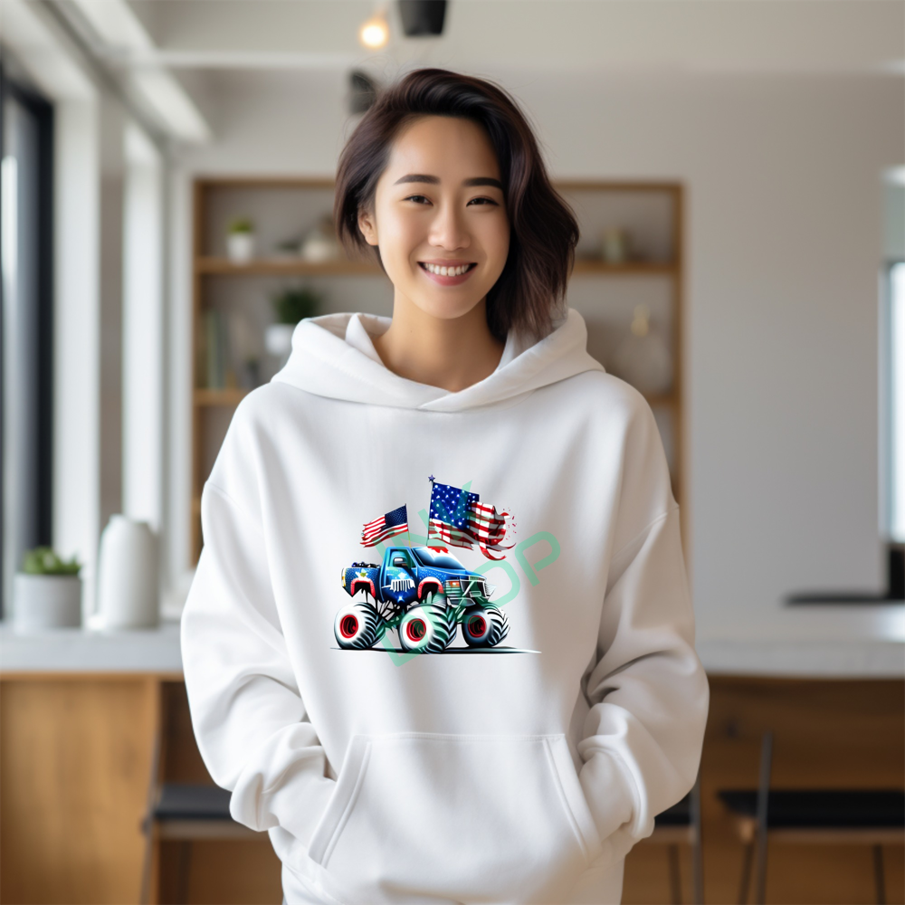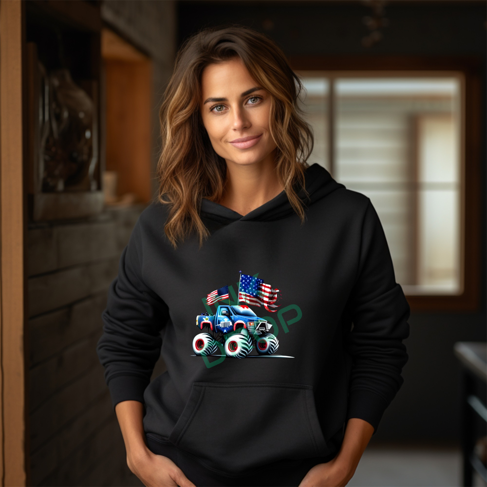 Patriotic Monster Truck with American Flags On It Hoodie