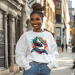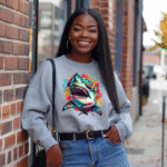 Cool Colorful Shark with Sunglasses Graphic Art Sweatshirt