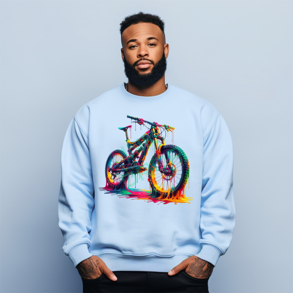 Dripping Paint Bicycle Sweatshirt, Colorful Bike Art Sweatshirt, Unique Cycling Gift, Mountain Bike Apparel, Artistic Bicycle Lover Gift