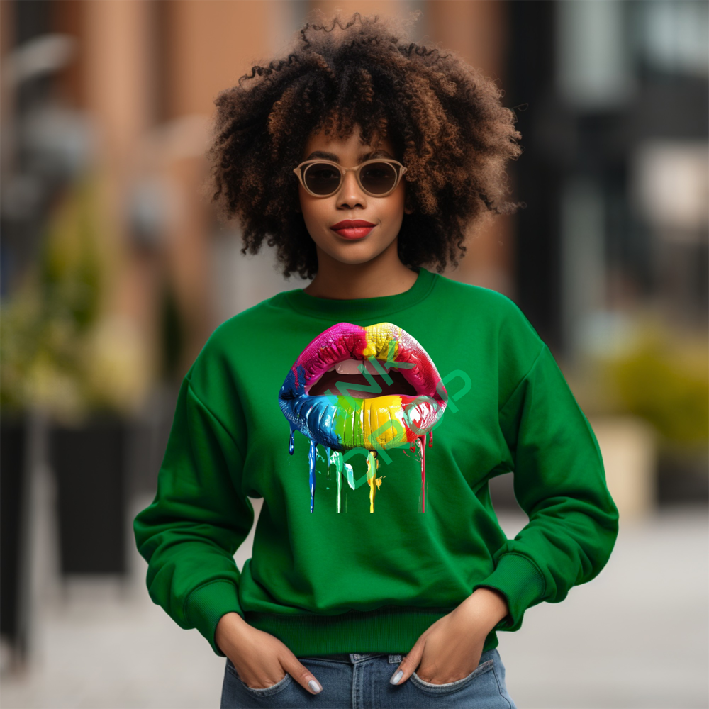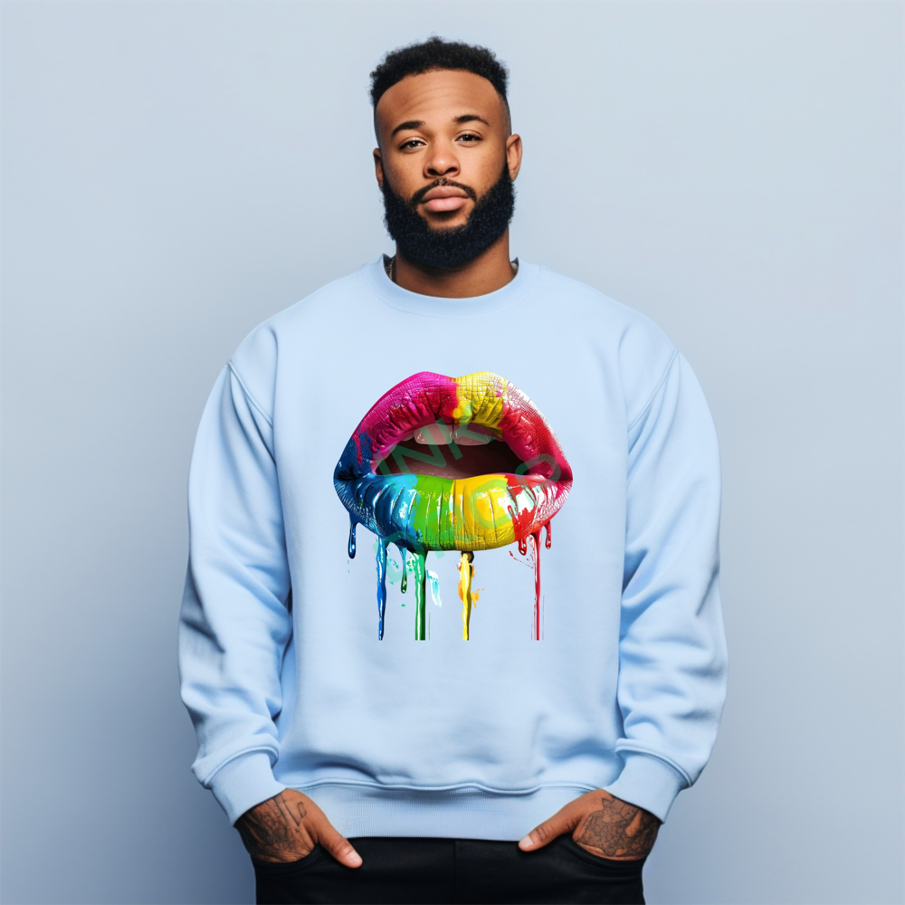 Colorful Lips Sweatshirt, Dripping Paint Art, Modern Aesthetic, Trendy Sweatshirt, Abstract Design, Unique Sweatshirt, Gift Idea