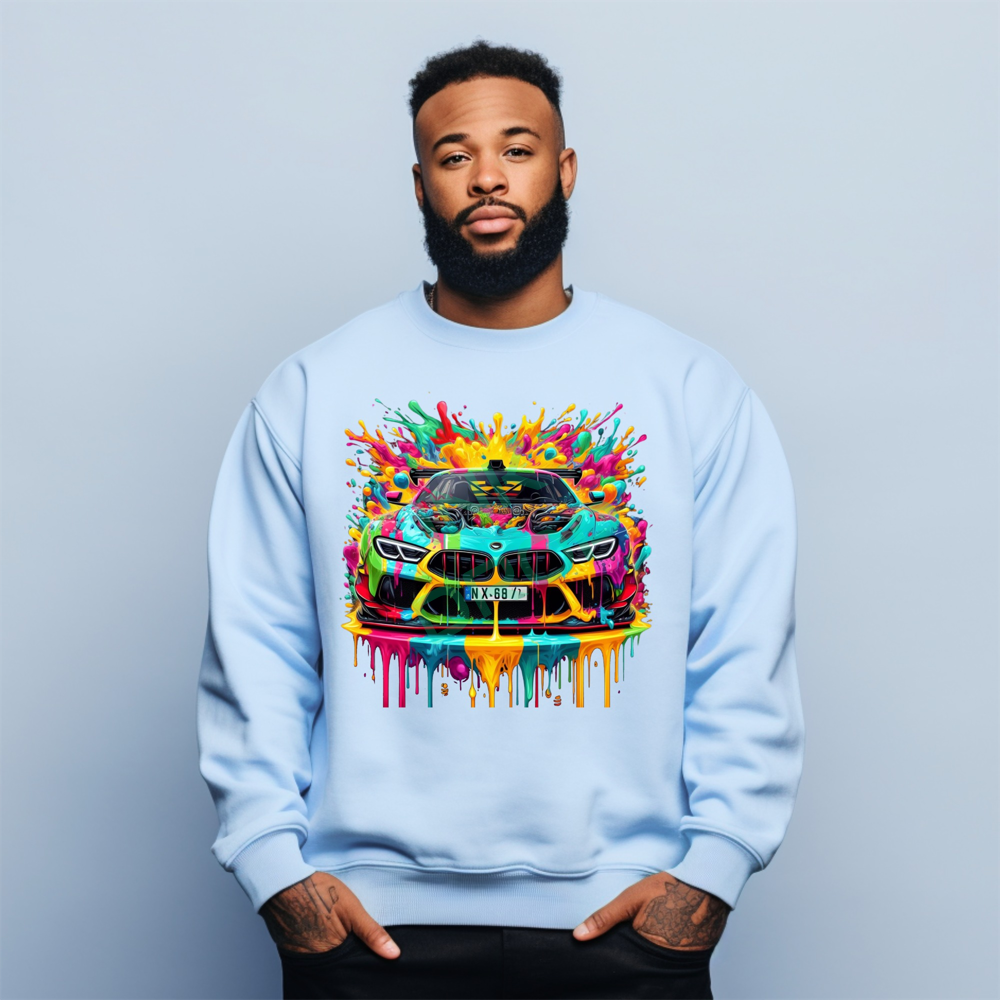 Colorful Car Sweatshirt, Vibrant Automotive Art, Motorsport Enthusiast Apparel, Unique Graphic Sweatshirt, Car Lover Gift, Stylish Unisex