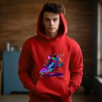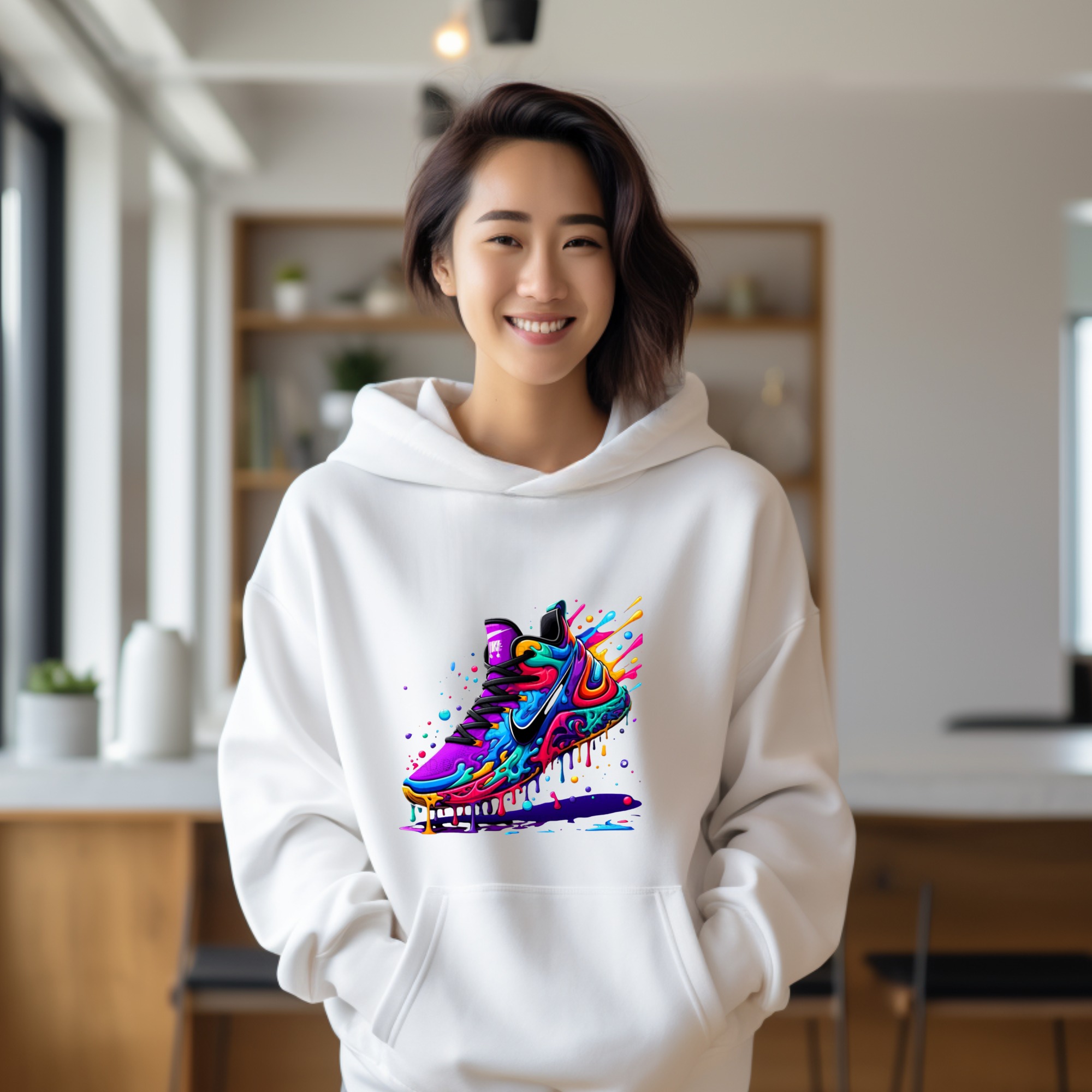 Vibrant Paint Drip Athletic Shoe Hoodie, Colorful Street Art Sneaker Graphic, Abstract Design, Unique Sporty Apparel, Bold Artistic Hooded