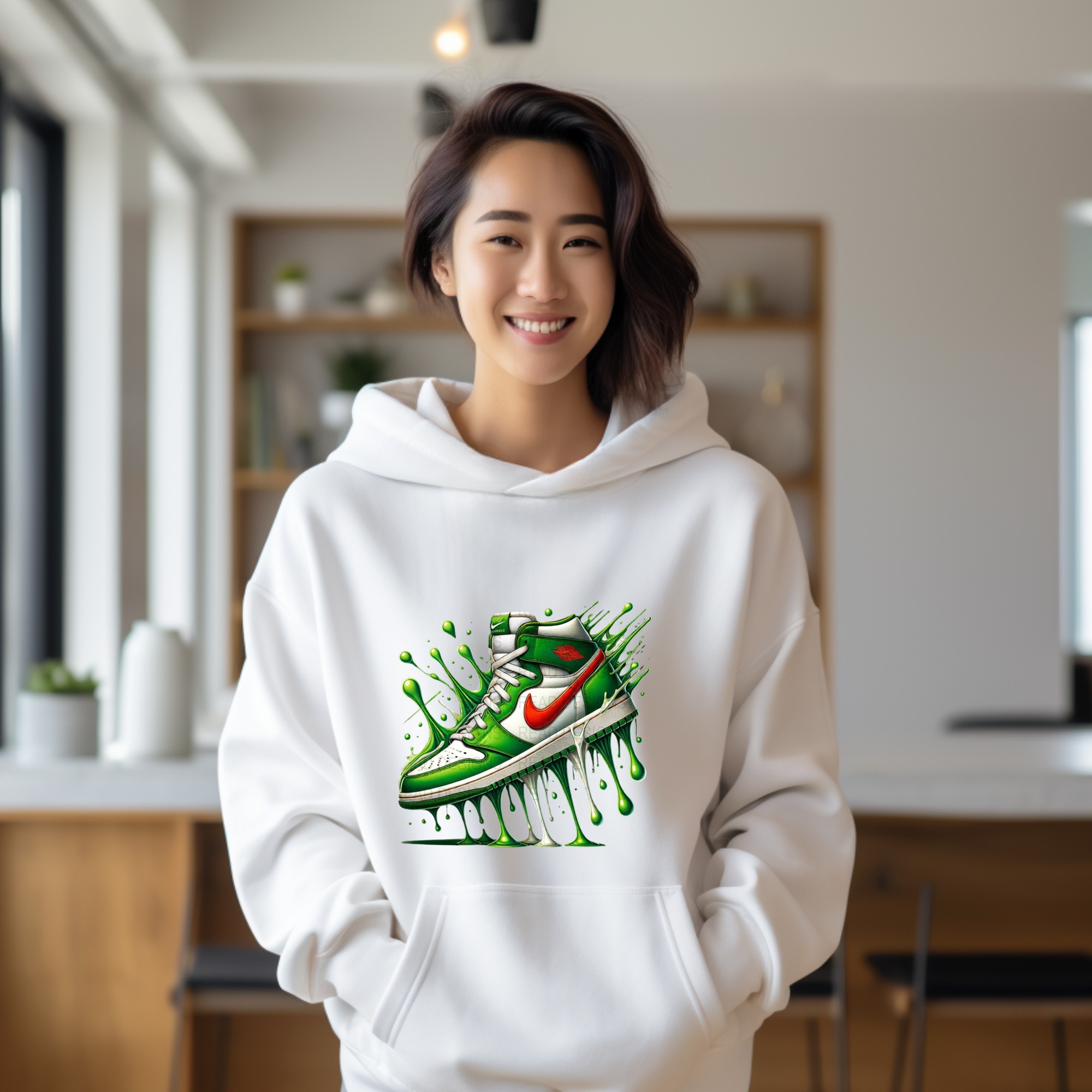 Dynamic Green Slime Sneaker Hoodie, Vibrant Drip Art Hoody, High Top Shoe Graphic, Trendy Streetwear Design, Urban Footwear Gift