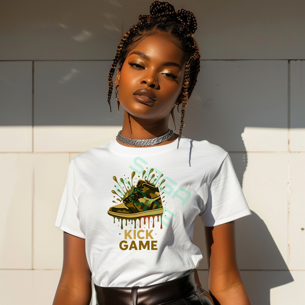 Cool Camo Drip Design Kick Game Graphic T-Shirt