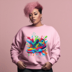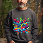 Vibrant Paint Splatter Jordan 4 Sneaker Sweatshirt, Colorful Urban Street Art Shoe Design, Unique Artistic Drippy Graffiti Apparel