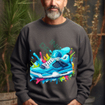 Jordan Sneaker Sweatshirt, Vibrant Blue Shoe Art, Colorful Paint Splash Design, Streetwear Graphic, Unique Sneakerhead Gift, Artistic Drip